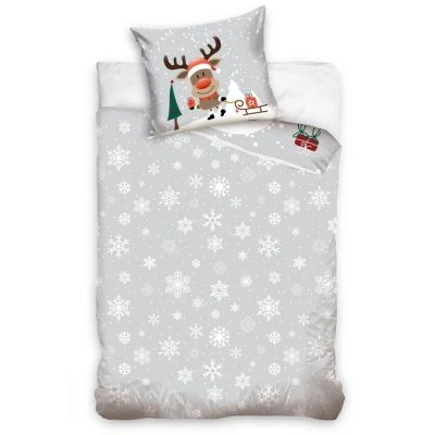 Die niedliche Weihnachtsbettwäsche “ Rentier mit roter Nase “ zum Träumen, Kuscheln & Wohlfühlen. Das Motiv bringt Weihnachtsstimmung in Ihr Schlafzimmer. Eine tolle Geschenkidee für Weihnachten.