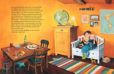 Es ist Heiligabend. In den Fenstern der kleinen Stadt leuchten Weihnachtslichter und an den Weihnachtsbäumen brennen Kerzen. Alle Kinder sind froh – nein, nicht alle Kinder! Pelle, Bosse und die kleine Inga sind ganz alleine. Fast scheint es, als sollte dies das traurigste Weihnachtsfest werden, das sie je erlebt haben. Doch sie haben nicht mit Pippi Langstrumpf gerechnet! Pippi bringt Geschenke mit und hat sogar einen Weihnachtsbaum dabei. Und mit dem wird getanzt, bis sich die Balken biegen! Die Geschichte „Pippi Langstrumpf feiert Weihnachten“ wurde 2002 zufällig auf der Rückseite eines Ausschneidebogens im Astrid-Lindgren-Archiv in Stockholm entdeckt.
