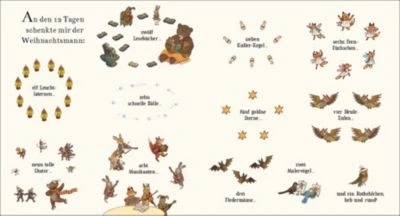 <p>Zur Weihnachtszeit herrscht im Bärenwald viel Trubel: Die Tiere toben herum, machen Schneeballschlachten, veranstalten ein großes Festessen, um sich dann abends mit einem Buch ins Bett zu kuscheln und einer Gutenachtgeschichte zu lauschen. Vor allem freuen sich die Waldbewohner auf die Geschenke – kannst du entdecken, was der Weihnachtsmann Bär und seinen Freunden dieses Jahr mitgebracht hat? </p>