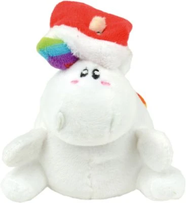 Das Weihnachtsfest steht vor der Tür und das niedliche Pummeleinhorn ist schon weihnachtlich ausgestattet. Das kleine Plüscheinhorn trägt nämlich eine Weihnachtsmannmütze!